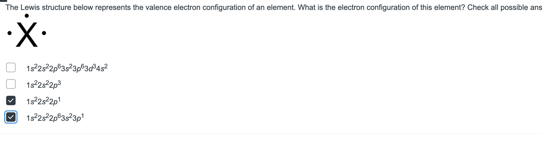 Check all possible answers. An atom that has the following electron configuration. What is the electron configuration of P.